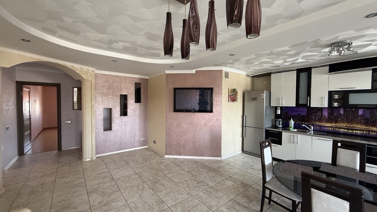 Отличная евротрешка общей площадью 104 кв.м. м-н Квартира в отличном состоянии, качественный ремонт: стены в гостиной, прихожей детской и лоджии оштукатурены и окрашены, теплый пол по всей квартире(кроме спален), потолок подвесной декоративная штукатурка.