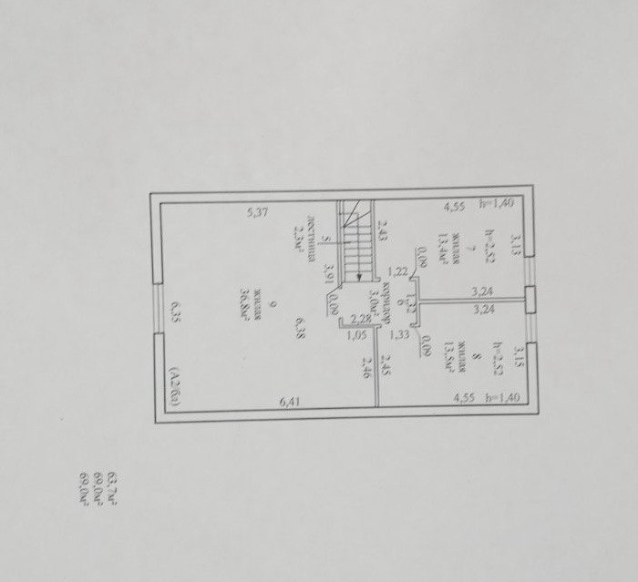 2-этаж: три спальни (36,8, 13.5 и 13.4 кв.м.) под чистовую отделку.