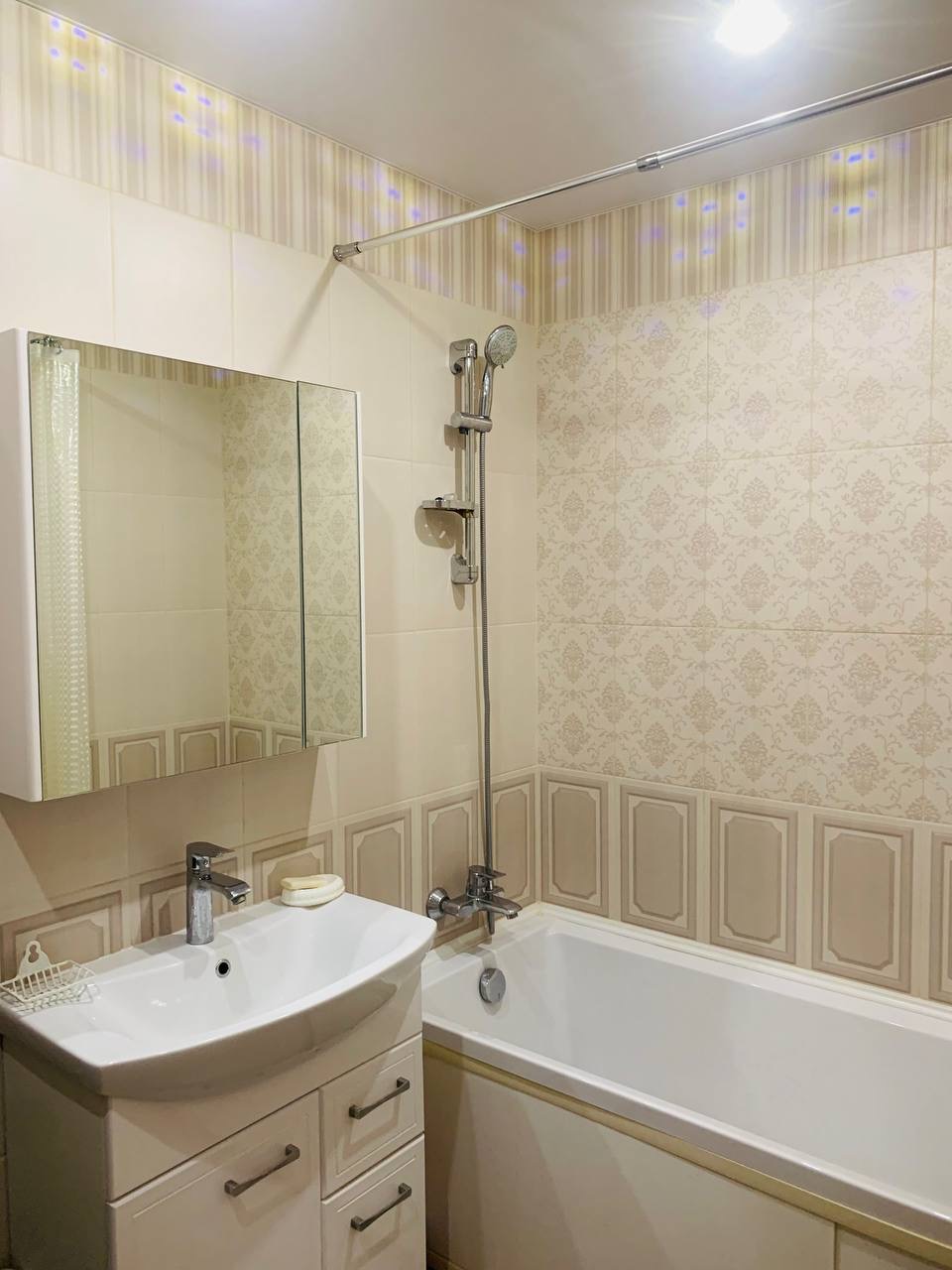 * сделан качественный ремонт: пол – ламинат на стяжке, натяжные потолки, в санузле – керамическая плитка;